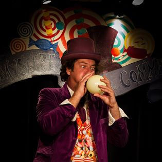 C'est ce rêve que je vous propose de réaliser le temps de quelques illusions avec un personnage qui finit par multiplier à volonté ses bonbons fantaisistes et ses chocolats géants avec la complicité de son public.